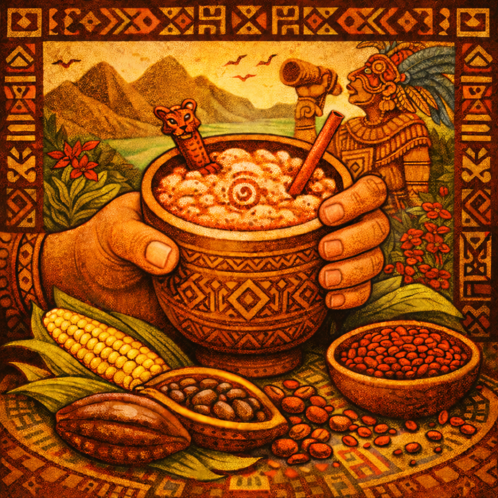 Usamos cacao criollo, maíz y especias naturales para ofrecer bebidas profundas, intensas y fieles a su historia, elaboradas con productos de cacao 100% puro.