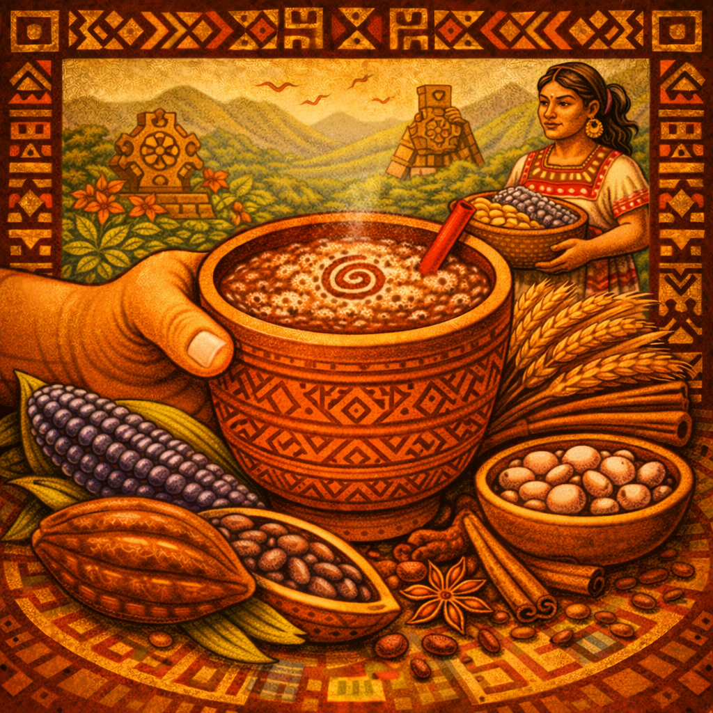 De origen maya, el tanchukuá es una bebida especiada que remite a contextos rituales y celebratorios de la península de Yucatán. La combinación de cacao y especias aromáticas evoca prácticas ancestrales donde el sabor funcionaba como vehículo de energía, conocimiento y equilibrio.